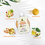 I am a super nourishing baby body massage oil enriched with the perfect blend of natural essential oils. I am dermatologically tested, clinically proven, 100% vegan, and free from all toxic chemicals, which makes me completely safe for your little munchkin. Using me every day before bath time makes the baby feel relaxed and soothed. A nourishing massage session with me will help you build a deeper bond between you and your baby and strengthen their tiny bone muscles. I will not only stimulate healthy blood flow but even moisturise your baby’s delicate skin. I shall provide instant hydration and promote shinier and softer skin.