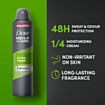 Dove’s unique and powerful formula dries off quickly and provides a shield for your skin to offer protection against sweat and odour for up to 48 hours. Further, Dove Body Spray’s 1/4 moisturising technology soothes and conditions skin to keep it hydrated and protected against irritation & dryness. Dove Antiperspirant Spray is skin friendly and is dermatologically proven to not irritate the skin. Its powerful & refreshing fragrance lasts for a long time on your skin, making you feel fresh all day long. For an exciting and inspiriting start, add Dove Men+Care Extra Fresh Deodorant to your daily care routine!