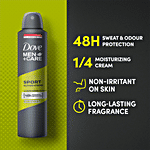 Dove’s unique and powerful formula dries off quickly and provides a shield for your skin to offer protection against sweat and odour for up to 48 hours. Further, Dove Body Spray’s 1/4 moisturising technology soothes and conditions skin to keep your skin hydrated and protected against irritation & dryness. Dove Antiperspirant Spray is skin friendly and is dermatologically proven to not irritate the skin. Its powerful, fresh & sporty fragrance lasts for a long time on your skin, making you feel fresh all day long. For an exciting and inspiriting start, add Dove Men+Care Sport Active+Fresh Deodorant to your daily care routine!