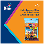 Fevicreate Artastic Science launches you into the fun and curious world of science, exploring concepts and explaining facts through 12 simple STEM activities. This pack has everything you need to create science-based articles, accessories, and games all enhanced in your own unique style with Rangeela Tempera colours and Rangeela Glitter. With detailed step-by-step instructions, tips, and references for design, you can now wow your friends and family with a cool science quiz and tricks, and personalise your school items - all you need is a curious mind, two hands, and the magic of science!