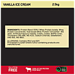 Protein Blend (93%) (Whey Protein Isolate, Whey Protein Concentrate, Hydrolysed Whey Protein) (Emulsifier: INS 322i), Artificial Flavours (Vanilla, Cream, Cookie, Waffle Cone), Thickeners (INS 466, INS 415), Sodium Chloride, Sweeteners (INS 955, INS 960). ALLERGENS: Contains MILK and SOY.