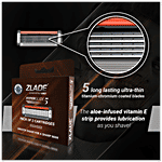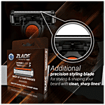 The advanced Zlade HyperGlide5 is a 5-blade razor for men that is the perfect blend of precision engineering, remarkable product design, and modern ergonomics. Featuring 5 super-sharp and ultra-thin titanium/chromium coated blades, the Zlade HyperGlide5 men's shaving razor has been built with meticulous attention to detail so that you get nothing less than the closest and smoothest shave - every single time. Its pivoting head adjusts to the contours of your face and the aloe-infused lubrication strip moisturises your skin as you shave. This stylish razor is also equipped with an additional precision styling blade that is meant for styling and shaping your beard with clean, sharp lines. -
