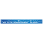 Cleaning Agent 20% v/w, Fragrance-2% v/w , Surfactant-10% v/w, BKC-80%-1%, Permitted Preservative, Colour, Fragrance.