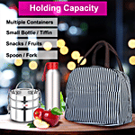 The Dine Time Lunch bag is insulated to keep your food and drinks cold, while also making its way through a busy day. It has plenty of space to store all your stuff while also being able to fit easily under the table. Portable and reusable The Dine Time Insulated Lunch Bag is lightweight, easy to carry and comes with a satin lining for your food. Made from durable material that doesn't fade or get dirty easily. Keeps your food fresh for a longer time. The overall design is to make it safe, which was made of non-toxic plastic. The bag is made up of durable and washable materials, easy to use and clean. The inner lining with insulation interior design provides maximum thermal insulation and keeps your food frozen cold for hours, Won't let the food get an unpleasant smell or taste