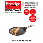 Prestige Omega Die-Cast Plus Non-Stick Induction Base Tawa - 31 cm, Black, 1 pc