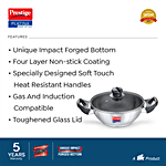Prestige Platina Non-Stick Stainless Steel Unique Impact Forged Bottom Kadai - With Glass Lid, 26 cm, Silver