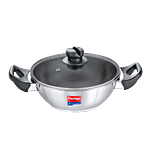 Prestige Platina Non-Stick Stainless Steel Unique Impact Forged Bottom Kadai - With Glass Lid, 26 cm, Silver, 3.8 L