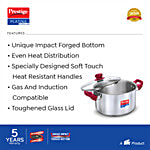 The Platina Popular Cookware comes with a unique Impact Forged Bottom, that ensures your food cooks fast and fries evenly. The specially designed durable heat-resistant handle allows for easier handling while cooking, while the toughened glass lid is durable and heat resistant. Designed for perfection, the Platina Popular Cookware is an elegant addition to your kitchen that does more than just look good. It is strong, long-lasting and designed to save energy.