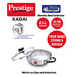 HOME>KITCHEN, GARDEN & PETS>COOKWARE & NON STICK>KADAI & FRY PANS>PRESTIGE Tri Ply Splendor Stainless Steel Gas & Induction Compatible Kadai - With Glass Lid, 22 cm, Silver