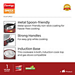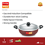 Prestige Omega Deluxe Stainless Steel Gas & Induction Compatible Non-Stick Kadai - With Lid, 28 cm, Red