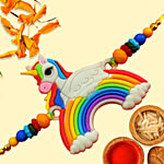 "Rainbow Rakhi" is an enchanting kid's cartoon that celebrates the bond of love between a brother and sister. Made with high-quality materials, the rakhi features designer patterns in an aesthetic style, adorned with shimmering glimpses that truly showcase its beauty. Join Rakhi on a joyous journey as she explores the galaxy with her friends, spreading love, kindness, and the spirit of togetherness. This delightful series teaches valuable lessons about embracing differences, fostering friendship, and working as a team.