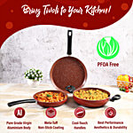 Wonderchef Tivoli Cookware Set - Kadhai, Fry Pan, Dosa Tawa, Red, 3 pcs