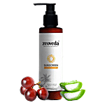 It functions as a sunscreen lotion containing zinc oxide, grapeseed oil, and aloe vera to shield the skin from UV rays and prevent the appearance of early signs of aging. SPF 50 certified for preventing sunburns, rashes, and redness from prolonged sun exposure. Ideal for sensitive skin as well.