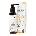 It functions as a sunscreen lotion containing zinc oxide, grapeseed oil, and aloe vera to shield the skin from UV rays and prevent the appearance of early signs of aging. SPF 50 certified for preventing sunburns, rashes, and redness from prolonged sun exposure. Ideal for sensitive skin as well.
