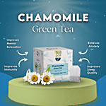 Tea Leaf and Co Chamomile Green Tea Bag is a pack of pure, high-grade, long, whole-leaf green tea infused with chamomile flowers in tea bags. It has antioxidant properties, improves mood, relieves stress, improves sleep quality and aids in proper digestion.