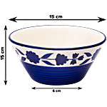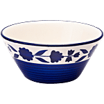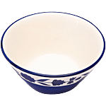 bb home Earth Dining Bowl/Katori Set - Handcrafted Ceramic, Floral Royal Blue