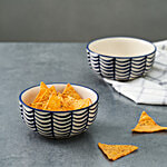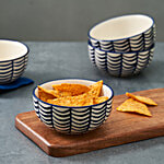 bb home Earth Dinner Bowl/ Katori, Hand Painted Ceramic, Coastal Blue, 300 ml (Pack Of 4)
