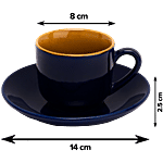 bb home Earth Teacup & Saucer Set, Hand Crafted Ceramic- Mystic Blue, 150 ml (Pack Of 4)