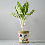 bb home Earth Planter/ Pot With Tray, Hand-Painted Ceramic, Vintage Autumn, 20.32 cm, Medium Size, 1 pc