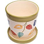 No Question askedbb home Earth Planter/ Pot With Tray, Hand-Painted Ceramic, Vintage Autumn, 20.32 cm, Medium Size
