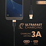 Duracell Type C To Micro USB Braided Fast Charging Cable & Data Sync - 1.2 m, Black, 1 pc