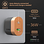 Duracell 36 Watts Fast Wall Charger Adapter, Type C Power Delivery QC 3.0 USB Charger Fast Charging Compatible with iPhone, iPad, Samsung Galaxy, Note, Redmi, Mi, Oneplus, Oppo, and Vivo Smartphones.