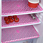 MULTIFUNCTION: Refrigerator mats pad can be cut into any size you need, can be used as a refrigerator mat, and also dress up your bookshelves, drawer, countertop, dining table or even desks. Super lightweight, easy to use.