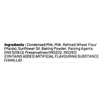 Condensed Milk, Milk, Refined Wheat Flour (Maida), Sunflower Oil, Baking Powder, Raising Agents (Ins 500(Ii)), Preservatives (Ins202, Ins282) Contains Added Artificial Flavouring Substances (Vanilla)