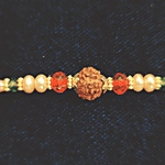 House of Festivals Rudraksh Rakhi - With Pearl Beads, Multicolour, HOF-RK23-1996, 1 pc