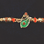 House of Festivals Leaf Pendant Rakhi - With Sparkling Stones & Pearl Beads, Multicolour, HOF-RK23-GKR-0364, 1 pc