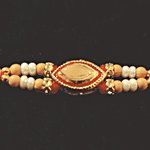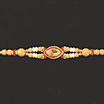 House of Festivals Single Stone Kundan Rakhi - Curve Shape, With Pearl Beads, HOF-RK23-7568, 1 pc
