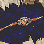 No Question askedHouse of Festivals Silver Design Rakhi - With Red Pearl Beads, HOF-RK23-7853