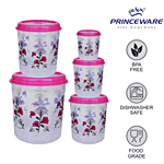Princeware Classic Storage Container Set - Pink, 5 pcs (800 ml, 1.4 l, 2.35 l, 4.05 l, 7 l)