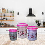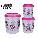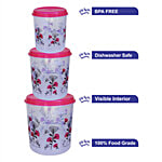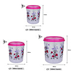 Princeware Classic Tall Atta/Dal/Rice Container Set - Pink, 3 pcs (4.05 L, 7 L, 12 L)
