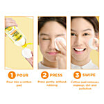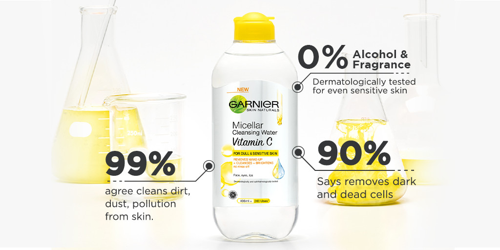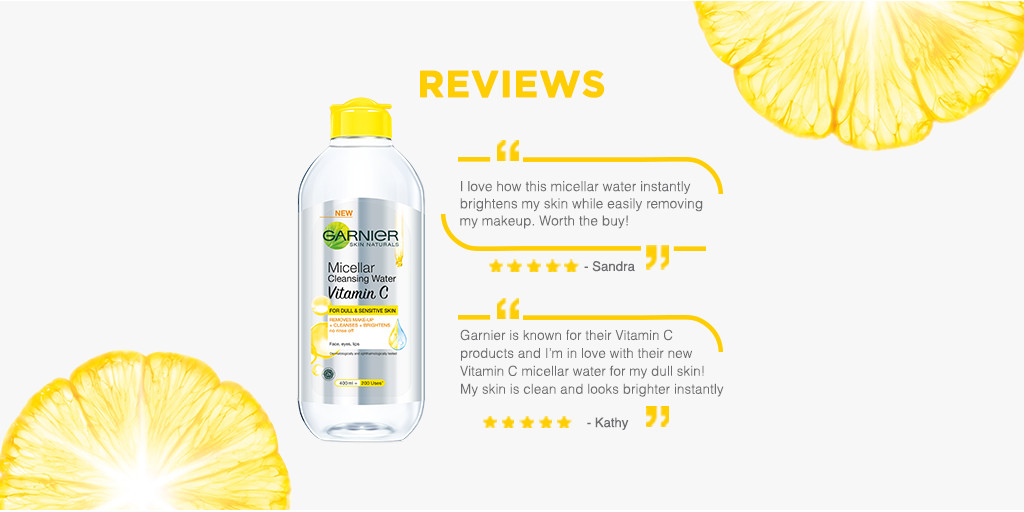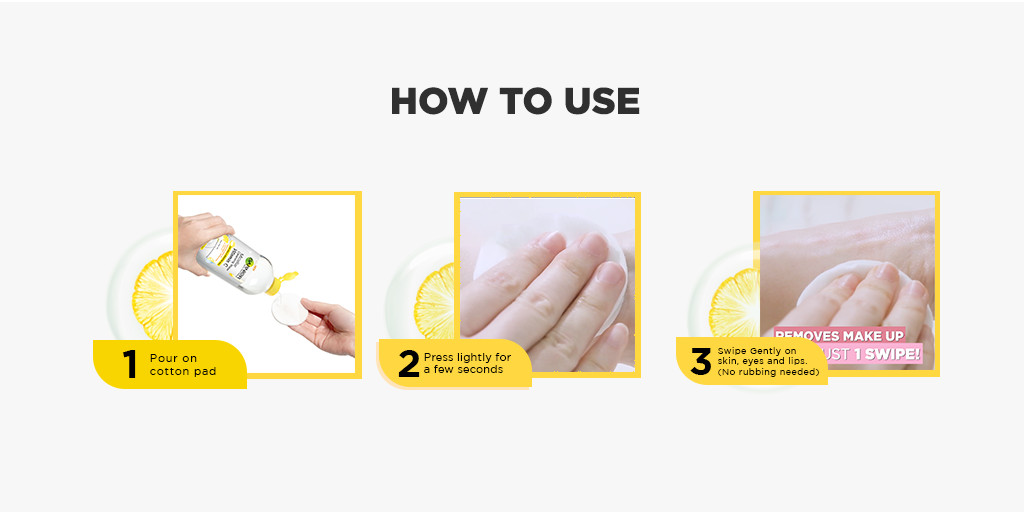 Pour Garnier Micellar Cleansing Water Vitamin C onto a cotton pad until it is fully saturated. Press lightly on the skin for a few seconds and swipe away gently. Rinsing is not required. Use daily for best results.
