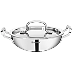 Bergner Tripro Triply Stainless Steel Kadhai with Stainless Steel Lid, 26 cm, 3.95 Liter, Induction Base, Silver has three layers of stainless steel and an induction base, is ideal for sauteing, stir-frying or deep frying. It has even heat distribution and a smooth surface that ensures even cooking results so you can prepare tasty meals in no time. The 26 cm size and 3.95-litre capacity make it ideal for sautéing, stir-frying, deep-frying, and cooking larger quantities of ingredients, this kadhai has a long life span due to its induction base. The stainless-steel lid protects your food while you cook, keeping it warm and bubbling away so all that deliciousness stays inside where it belongs. The even heat distribution gives you the perfect pan temperature, allowing you to cook in your kitchen with ease and precision. The stainless-steel lid prevents splatters and spills while making it easier to clean. With a stainless-steel lid and induction base, it's also safer than you might expect. Explore more such innovative, durable, and convenient kitchen accessories fat Big Basket. Elevate your cooking experience with the Bergner Tripro Triply Stainless-Steel cookware and enjoy delicious meals with ease.