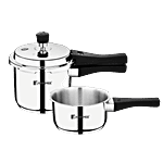 Bergner Sorrento Stainless Steel Pressure Cooker Combo With Outer Lid - Induction Base, 5 Year Warranty, Silver, 2 pcs (2 l + 3 l)