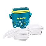 No Question askedBorosil Grace Square Transparent Glass Tiffin Box With Vertical Green Bag