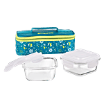No Question askedBorosil Grace Square Transparent Glass Tiffin Box With Horizontal Green Bag