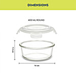 Borosil Grace Round Transparent Glass Tiffin Box With Vertical Green Bag, 400 ml (Set of 2)
