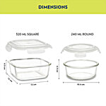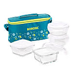 Borosil Grace Transparent Glass Tiffin Box With Green Bag, 4 pcs (320 ml x 2 + 240 ml x 2)