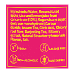 Water, Reconstituted Apple Juice And Lemon Juice From Concentrate (12%), Sugars (Cane Sugar, Dextrose Monohydrate), Carbon Dioxide, Assam Tea, Citric Acid, Chicory Root Fibre, Darjeeling Tea, Bilberry Extract, Natural Strawberry Lemonade Flavour, Salt.
