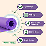 Unleash your inner strength with the Natures Plus Yoga Mat in a captivating royal shade of purple. Ideal for yoga, meditation, and bodyweight exercises, this mat offers comfort and stability. The non-toxic and skin-friendly construction ensures a safe practice. With its 6-millimetre thickness, it provides gentle support for your joints, allowing you to perform with ease. Cleaning is simple, and the textured surface offers a reliable grip, promoting balance and confidence. Experience durability, style, and easy maintenance with the Purple Yoga Mat. Explore more of our home aide and personal wellness range on Big Basket.