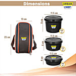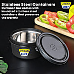 Urban Chef Medio Executive Stainless Steel Lunch Box - Insulated Fabric Bag, Black, 3 pcs