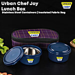 Urban Chef Joy Stainless Steel Lunch Box - With Insulated Fabric Bag, Blue, 450 ml (Set of 2)