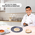 Experience the joy of effortless roti-making with the Wonderchef Taurus Hard Anodised Roti Tawa. Featuring a durable hard anodised coating, this high-quality tawa ensures even heat distribution for flawless cooking results every time. The secure grip handle provides easy handling, allowing you to flip your rotis and parathas with precision. Whether you're whipping up fluffy rotis or delectable parathas, this reliable and long-lasting tawa will bring out the best flavours in your dishes. Explore Wonderchef's stunning range of kitchenware and elevate your culinary journey with this must-have kitchen essential.
