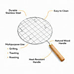 Petals Stainless Steel Barbeque/Pizza/Grill/Papad Roast Jali - With Wooden Handle, 1 pc