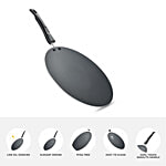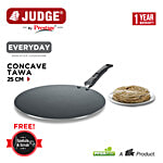 Introducing the Judge by Prestige Everyday Aluminium Non-stick Cookware Concave Tawa 25 cm with free Spatula and Scrub, Black - The ideal healthy method of cooking for your family. This sophisticated cookware from Prestige is made to enhance the look of your kitchen while providing excellent cooking performance. This cookware's non-stick coating, which encourages healthful cooking by requiring less oil, is one of its most notable qualities. As a result, you may enjoy your favourite foods while using less oil, contributing to a better way of life. Because of the equal heating, there are no hotspots and consistent results are guaranteed. Your food is cooked evenly. You can depend on this cookware for regular use without any issues because of its durability, which ensures long-lasting performance. The cookware is the ideal complement to any kitchen due to its ability to cook with little to no oil and stylish style. The non-stick coating makes cleaning a snap, and the cool touch Bakelite handle provides a cosy and safe hold when cooking. The spatula was created expressly to work with the tawa's concave shape, making it simple to flip and rotate your meal. The non-stick surface may be cleaned thoroughly with the scrub without any damage. You will also get a complimentary spatula and scrape with the Judge by Prestige Everyday Aluminium Non-stick Cookware Concave Tawa, which increases the value of your purchase. So, purchase this The Judge by Prestige Everyday Aluminium Non-stick Cookware Concave Tawa 25 cm exclusively on Big Basket, and have it delivered right to your doorstep.