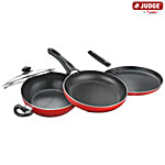The Judge by Prestige Deluxe Non-Stick Cookware Set, 3-Pieces, Red, 3 Pc is a premium cookware set that provides convenience and toughness. A frying pan, a saucepan, and a kadai (a deep, wide-mouthed cooking pot) are all included in this cookware set. The non-stick coating on all three items makes cooking and cleaning simple. Because of the non-stick coating, less oil or butter is used when cooking because food won't adhere to the pan. Functionality was a priority in the design of the Prestige Deluxe Non-Stick Cookware Set. The pots and pans are built with a durable design that guarantees consistent heat distribution, preventing hot spots and guaranteeing that your food cooks uniformly. To produce excellent and reliable outcomes in your recipes, this function is especially crucial. Because the Judge Deluxe Non-Stick Cookware Set works with induction cooktops, it may be used in a variety of kitchen settings. You can count on this cookware set to produce outstanding results whether you use a gas stove or an induction cooker. This cookware set requires little upkeep. You will spend less time and effort cleaning and maintaining it in the kitchen. Additionally, the set comes with a one-year warranty that gives you comfort about its performance and quality. So, purchase this The Judge by Prestige Deluxe Non-Stick Cookware Set, 3-Pieces, Red, 3 Pc exclusively on Big Basket, and have it delivered right to your doorstep.