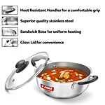 Judge by Prestige Classic Stainless Steel Kadai 24 Cm With Glass Lid